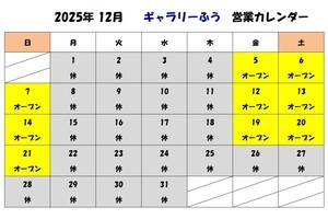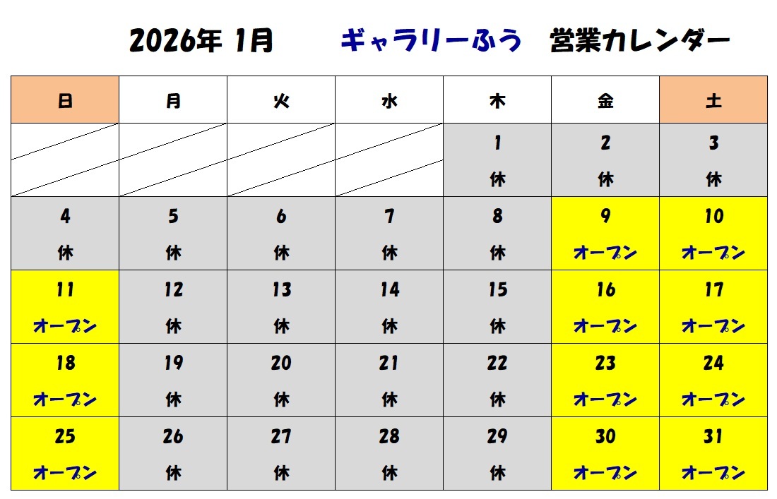 2025年1月は10日(金)から通常営業いたします。なお1月にご来廊の方には、新春のプレゼントをご用意いたしております。