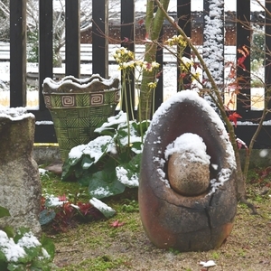 雨の日や夜には軒下に取り込んで、雨や霧に